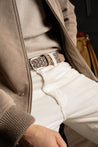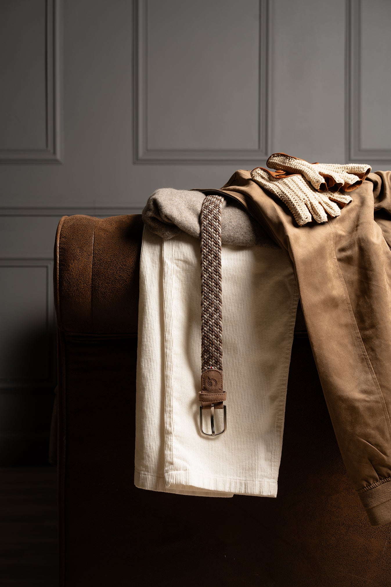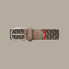 The Hyde Park La Boucle belt, braided in a mix of brown and grey.
