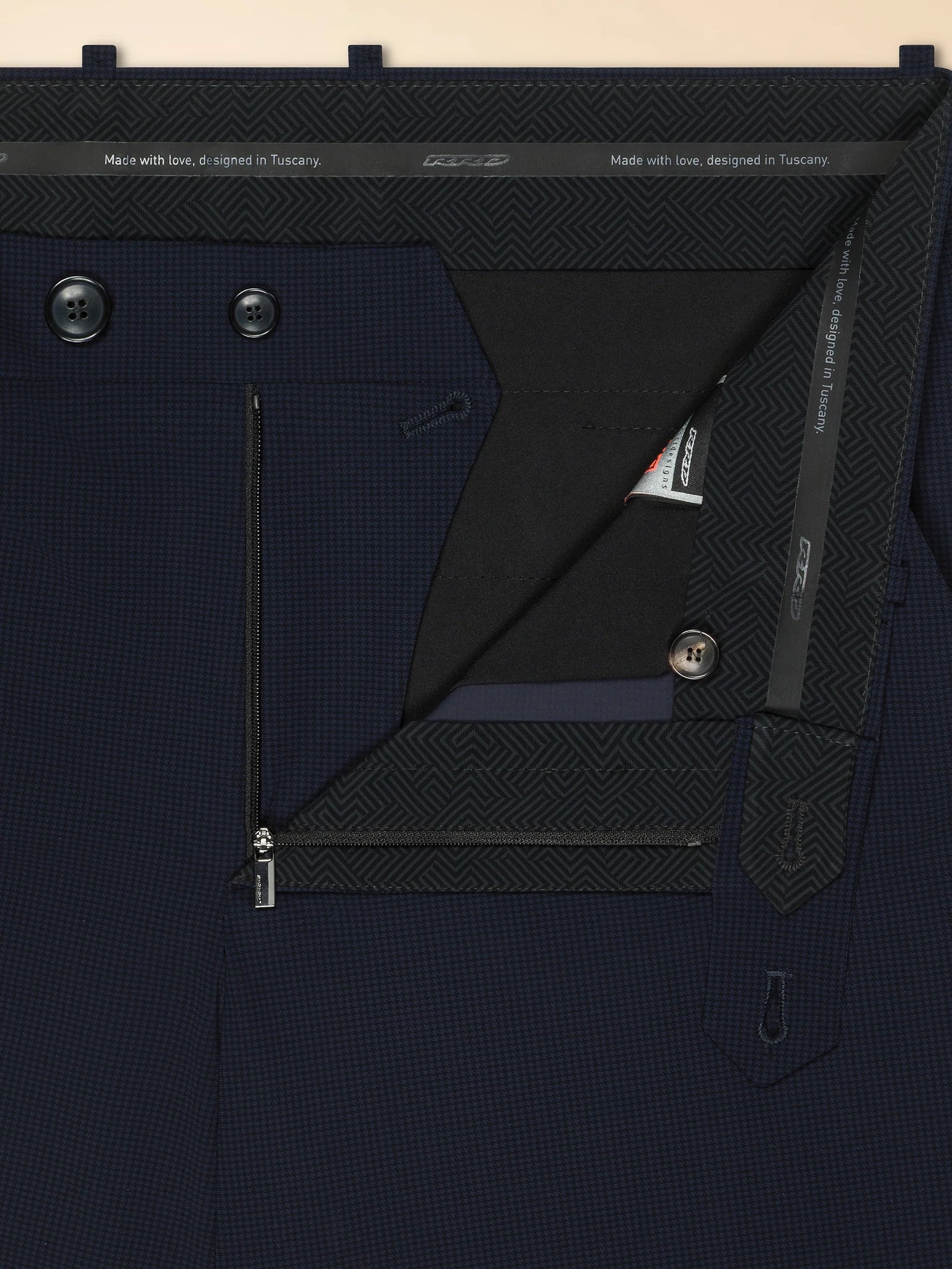 These classic chino trousers feature elegant microprints in a timeless elegance. Made from exclusive SURFLEX® stretch fabric that is cool, lightweight, and smooth to the touch, these slim-fit pants provide optimal comfort, even on the hottest days. The regular loop-belt waistband features a refined double-horn button closure and concealed zipper. Inside, the tone-on-tone Razzle Dazzle monogram print adds a subtle and distinctive detail. The French side pockets and cuffed hems highlight the sartorial attention to detail. The welt pockets on the back are accented by the emblematic black micro-injected logo. The versatile and contemporary Surflex Micro Chino Pant is ideal for achieving a casual, chic summer look or a professional outfit with natural elegance. Pair them with a striped Oxford shirt and the matching Surflex Micro Blazer.
